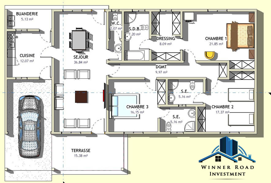 - Surface utile : 162,44 m2
